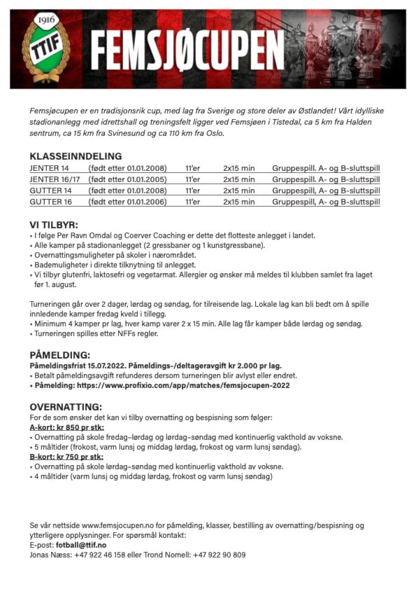 HER kan du melde på ditt lag på Femsjøcupen 2022.